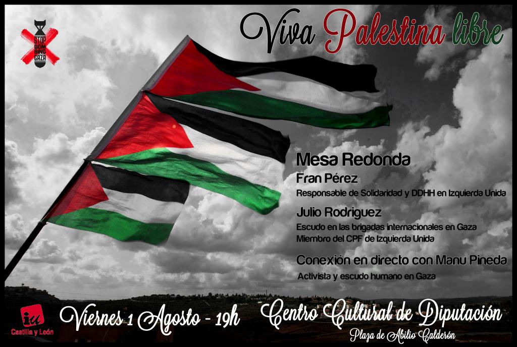 PCCL. 31/07/14. La federación castellano y leonesa del Partido Comunista de España (PCCL-PCE) hace un llamamiento a la ciudadanía de nuestra región y especialmente a las y los vallisoletanos, burgaleses, palentinos y sorianos, a participar en las concentraciones que se han convocado para hoy jueves 31 de julio para acabar con el genocidio que el gobierno de Israel está perpetrando contra el pueblo palestino en Gaza, atacando en un castigo colectivo viviendas, colegios, hospitales, parques infantiles y refugios de NNUU con el resultado de más de 1.500 muertos, muchísimos de ellos niñ@s.